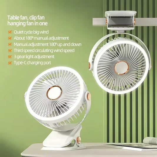 720° Wide Angle Rechargeable Desk Fan with LED Light